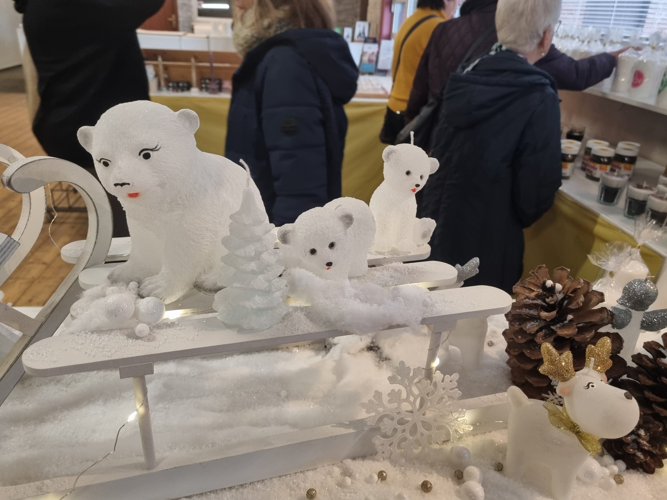 Im Ausstellungs- und Verkaufsraum konnten wir die geschnitzten Kerzen bewundern.