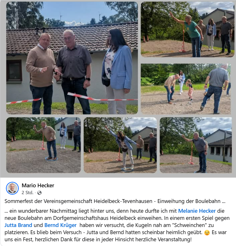 Im September 2024 hat die Vereinsgemeinschaft Heidelbeck-Tevenhausen e.V. in Eigenregie mit dem Bau eines Bouleplatzes begonnen.