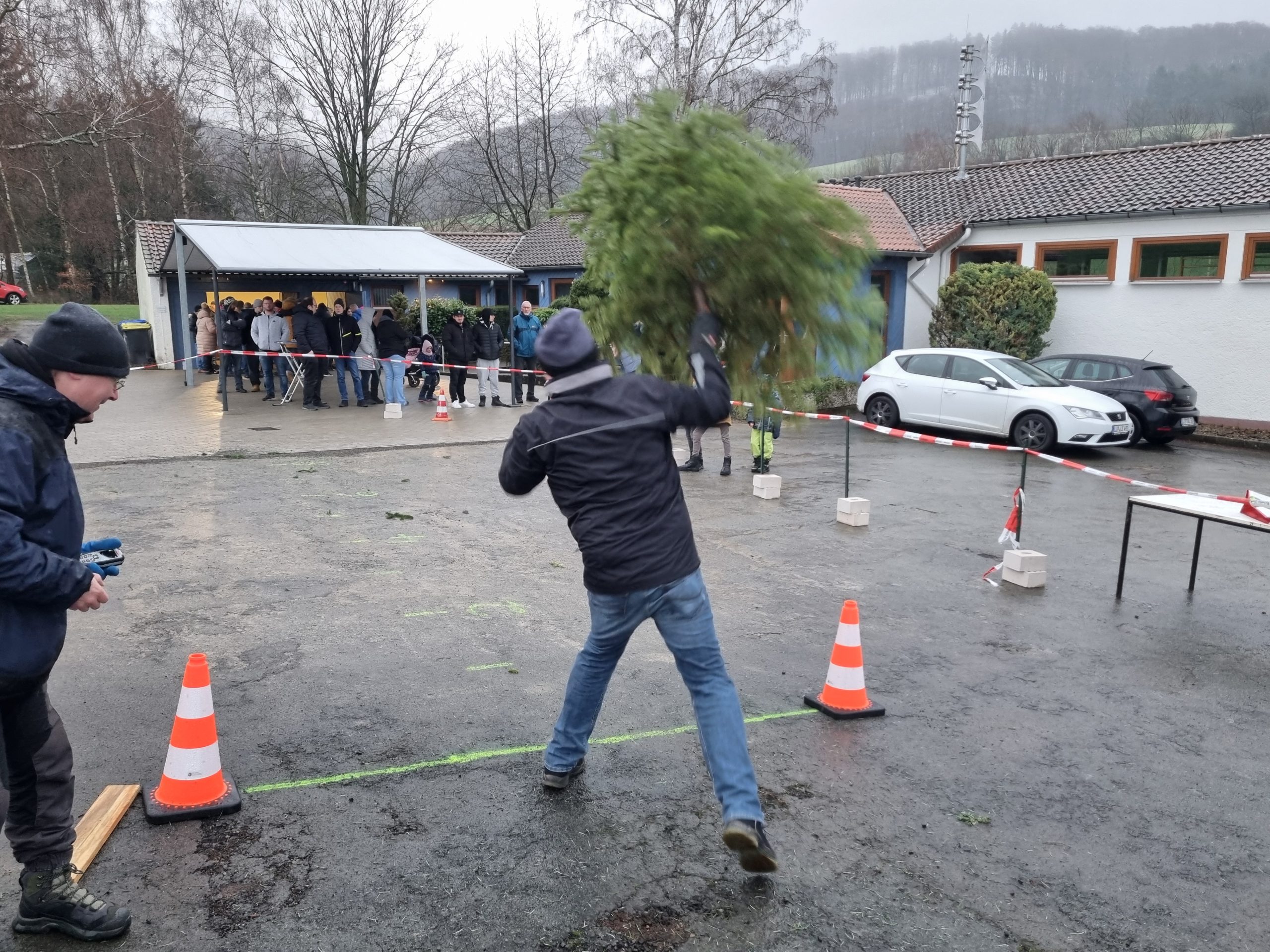 Weihnachtsbaumweitwurf am Dorfgemeinschaftshaus Heidelbeck