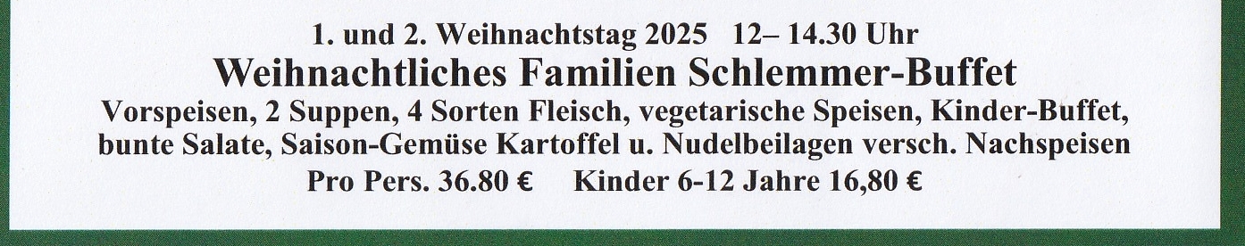 Donnerstags bis Sonntags – Tel. 05264 9163